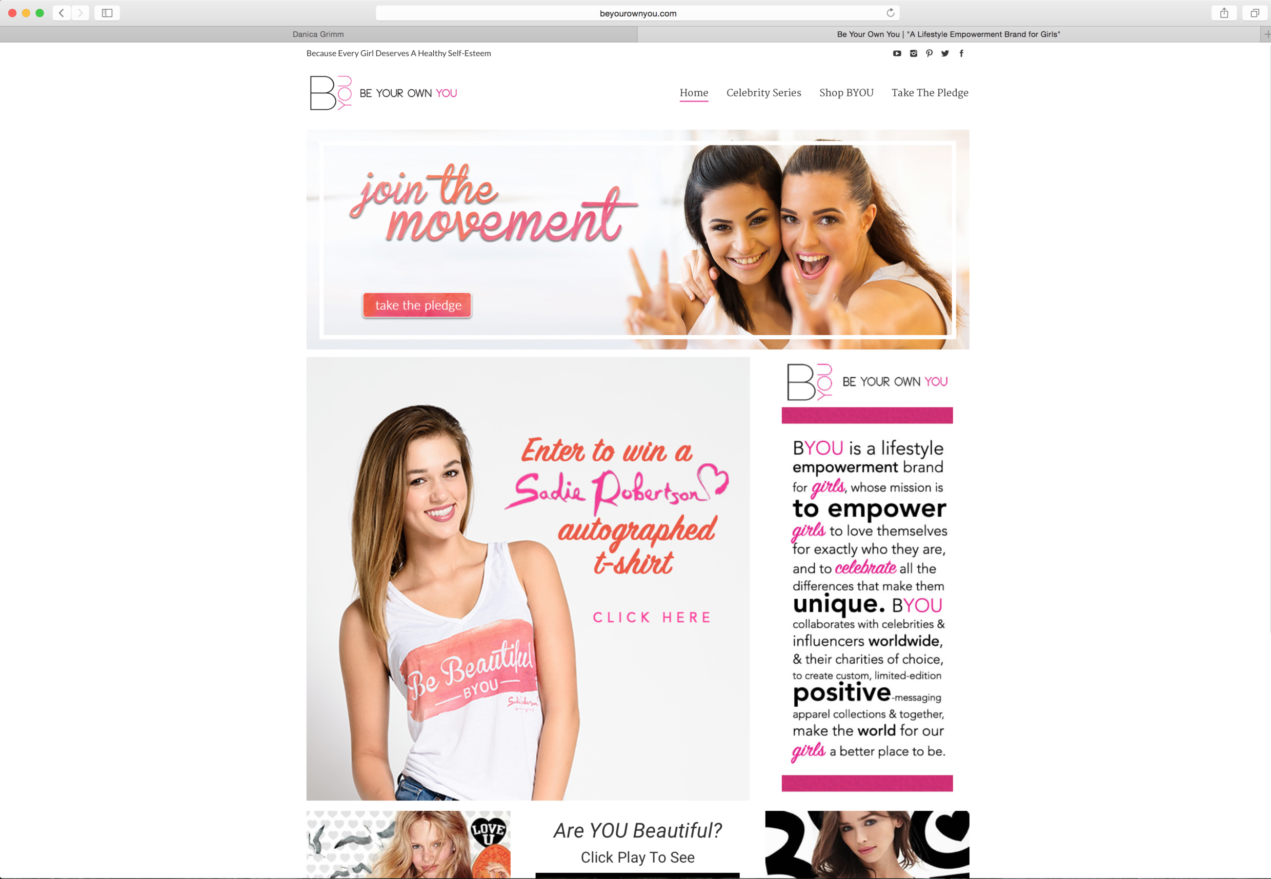 BYOU is a unique lifestyle empowerment brand for girls. They collaborate with celebrities and influencers, and their charities of choice, to create vehicles of inspiration and transformation for tween and teen girls. These products and programs are custom designed to help girls reclaim their power, their self-worth, self-esteem and inner strength, while incorporating a philanthropic component into each campaign.